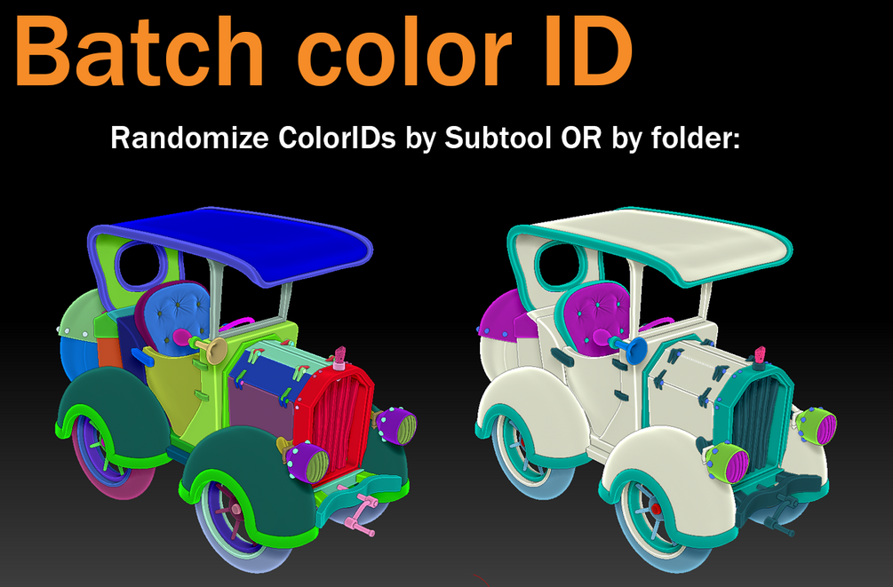 - Assign random color ID tool: Assigns a random color to each subtool for use in the ID mask.